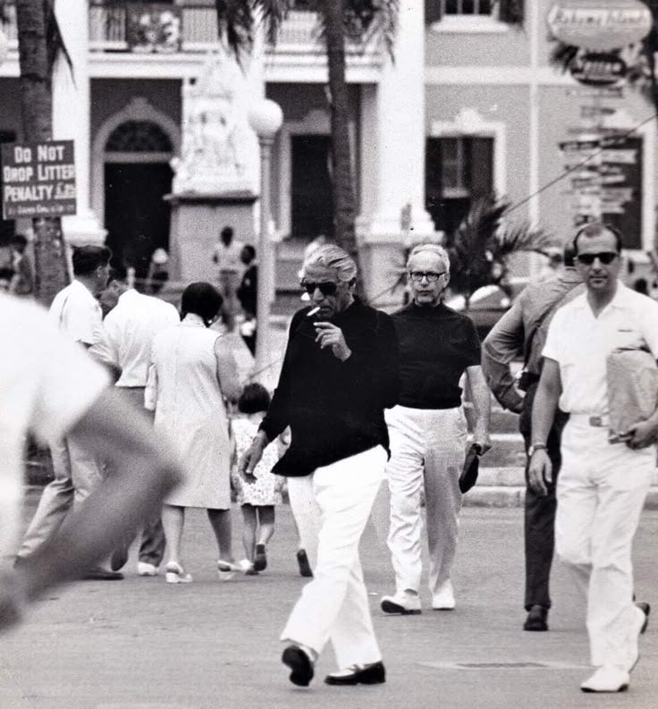 In the 1940s and 50s, before the shipping empire was fully built, Onassis was already a regular at El Morocco in Manhattan. That was the spot. Sinatra, the Kennedys, Hollywood royalty, all posted up there. Onassis didn’t sneak in. He locked it down. Knew every doorman, every bartender, every maitre d’. He tipped heavy, showed up consistently, and treated the staff like equals (because he’d been one). Sound familiar? Three Cs baby. Cash, charisma, consistency. Same playbook I gave you in How to Lock a Place Down, same playbook that’s been working since the 1940s.